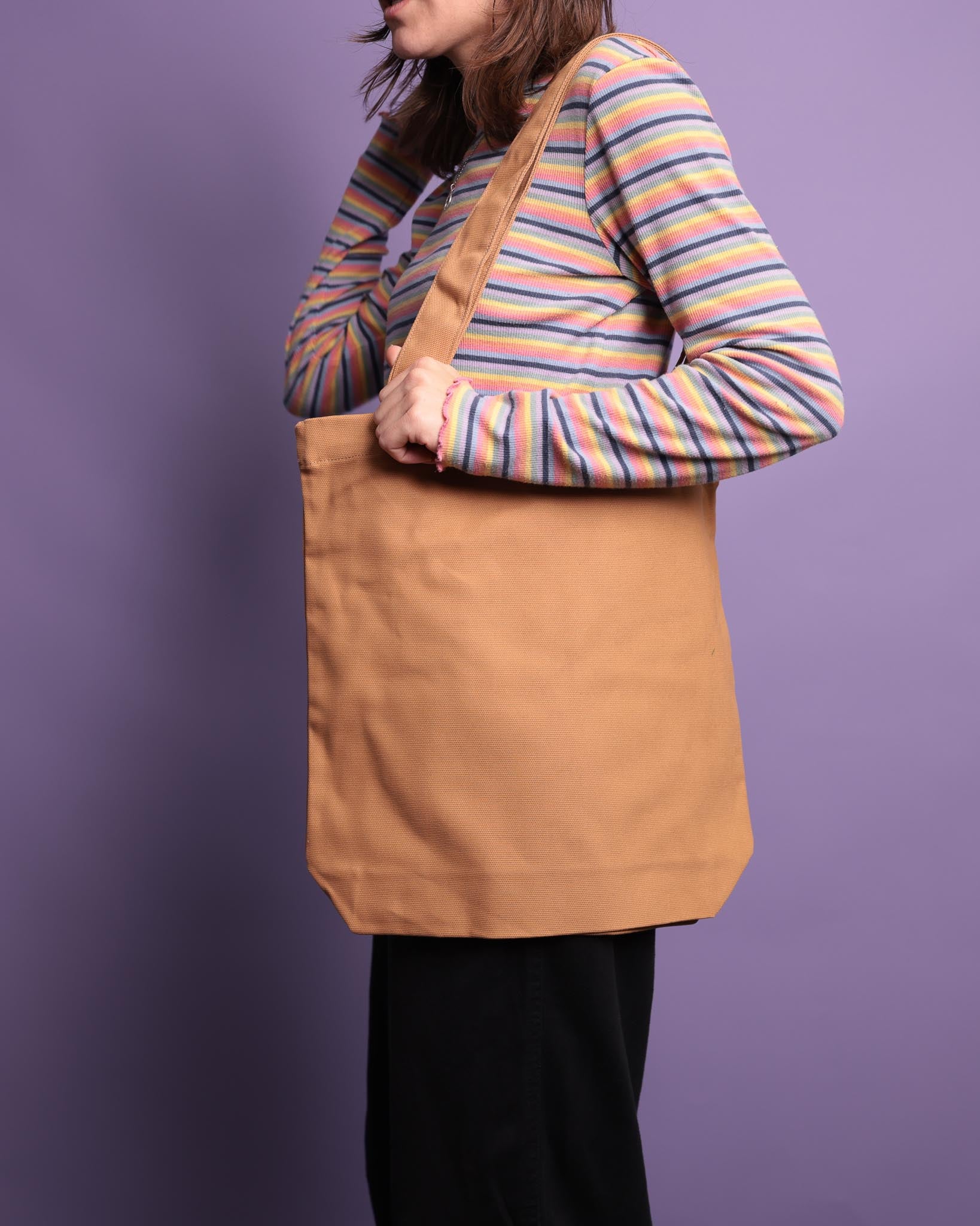 The 320 GSM heavy weight canvas material is durable enough to withstand daily use, and the 42cm by 42cm size allows for ample storage for your food, snacks or Macbook (let's be honest, it'll be your uni staple)