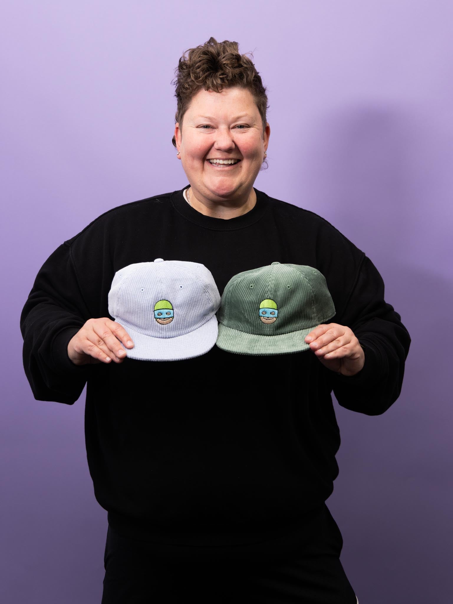 Now five year old Kirsty as Leonardo can be yours to wear on an awesome corduroy cap.